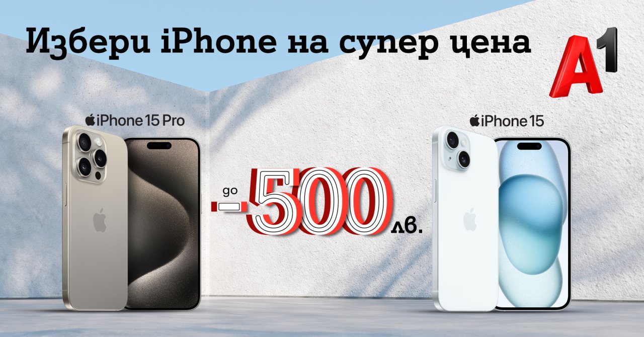 Трите модела се предлагат от А1 с до 500 лева намаление по време на промоционалната кампания през юли. iPhone 15 128 GB в цвят Blue може да бъде при новия си притежател за 929,99 лева в брой с план Unlimited Ultra. iPhone 15 Pro 256 GB в нежния Natural цвят е с 500 лева отстъпка и цена от 1 499,99 лв. със същия план, а перлата на серията iPhone 15 Pro Max 256 GB в цвят Black очаква потребителите в онлайн магазина А1.bg и търговската мрежа на компанията на специалната цена от 1 809,99 лева отново с план Unlimited Ultra.