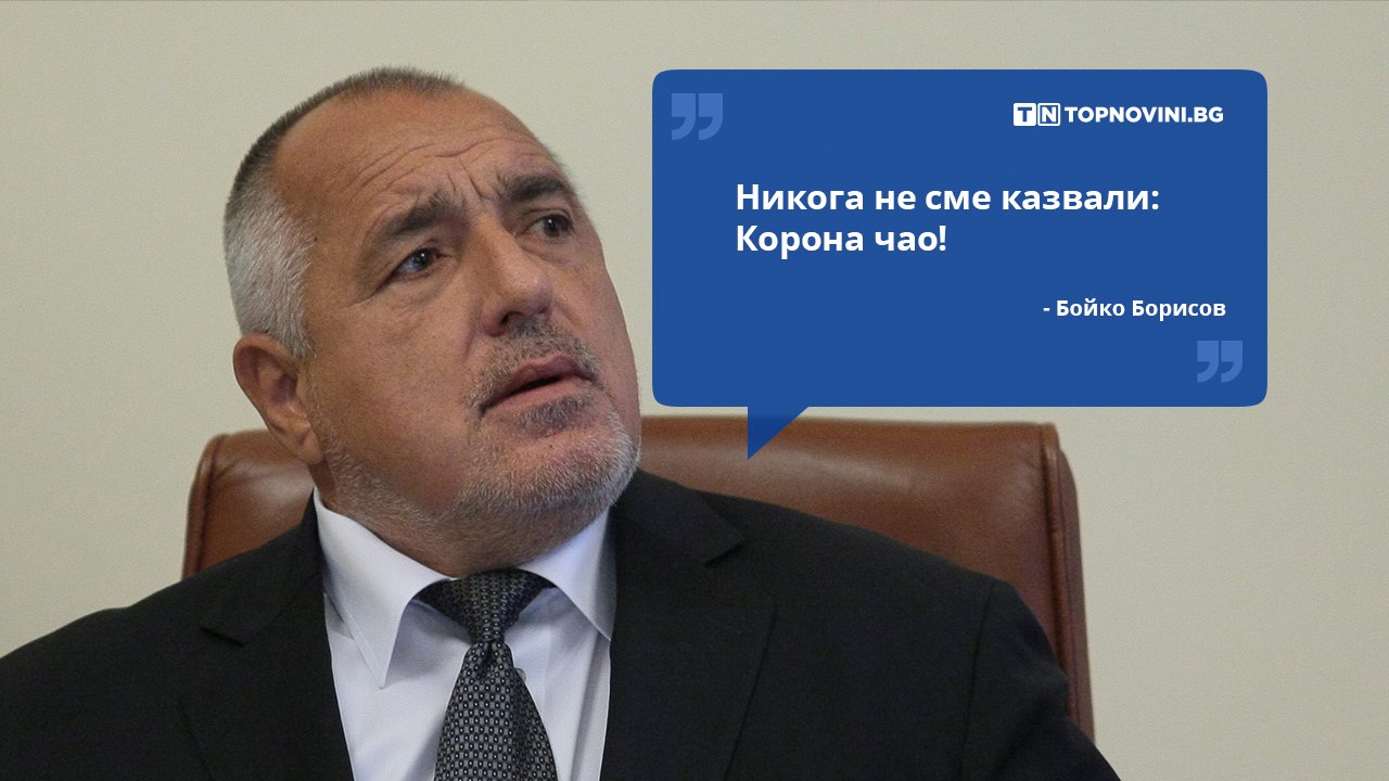 "Никога не сме казали, че коронавирусът си е отишъл, не сме казали "Корона, чао!", че пандемията е свършила, но не считам, че по никакъв начин трябва да се паникьосваме". Това коментира премиерът Бойко Борисов във връзка с ръста на броя заразени с коронавирус през последните дни. Той заяви, че не връща задължителното носене на маски, защото иска хората доброволно да спазват мерките. "Има хора, шопите са такива, като им кажеш не пипай шалтера, отиват и го пипат", даде пример Борисов.