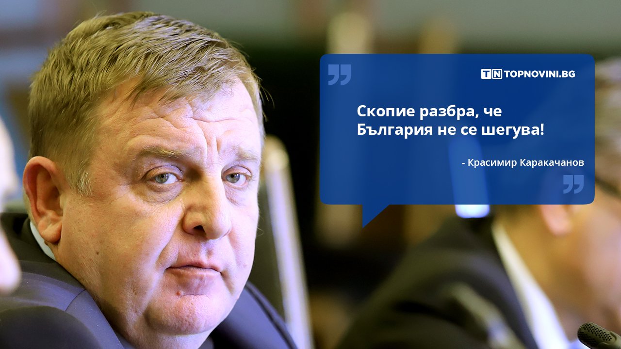 „Единствената нормална перспектива за Западните Балкани, е членство в ЕС. Северна Македония не може да чака някой да ни натисне. България е суверенна държава. Мисля, че от македонската делегация разбраха, че България не се шегува.“ Това коментира вицепремиерът и лидер на ВМРО Красимир Каракачанов във връзка с решението на България да не подкрепи югозападната ни съседка по пътя към Брюксел, докато не даде гаранции за изпълнение на поставените от страната ни условия.