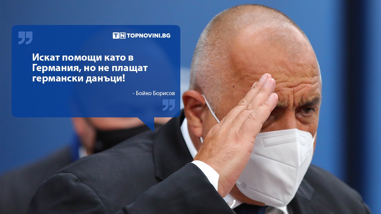 Той коментира с раздразнение, че една част от бизнеса дава пример как в Германия подпомагали повече икономиката. "Да де, ама там е 60% данъкът. В България е 10%. Сиреч, всеки месец българският бизнес плаща 10% данък на държавата, а другите 90% прибира като печалба и инвестиции евентуално. Едно и също ли е да взимаш на 100 лева 60, а 40 да оставяш на бизнеса, както много големи европейски държави, които ми се дават за пример сега. Или на 100 лева и то след облагане да остават 10 на бюджета, 90 да отиват при бизнеса", заяви Борисов.