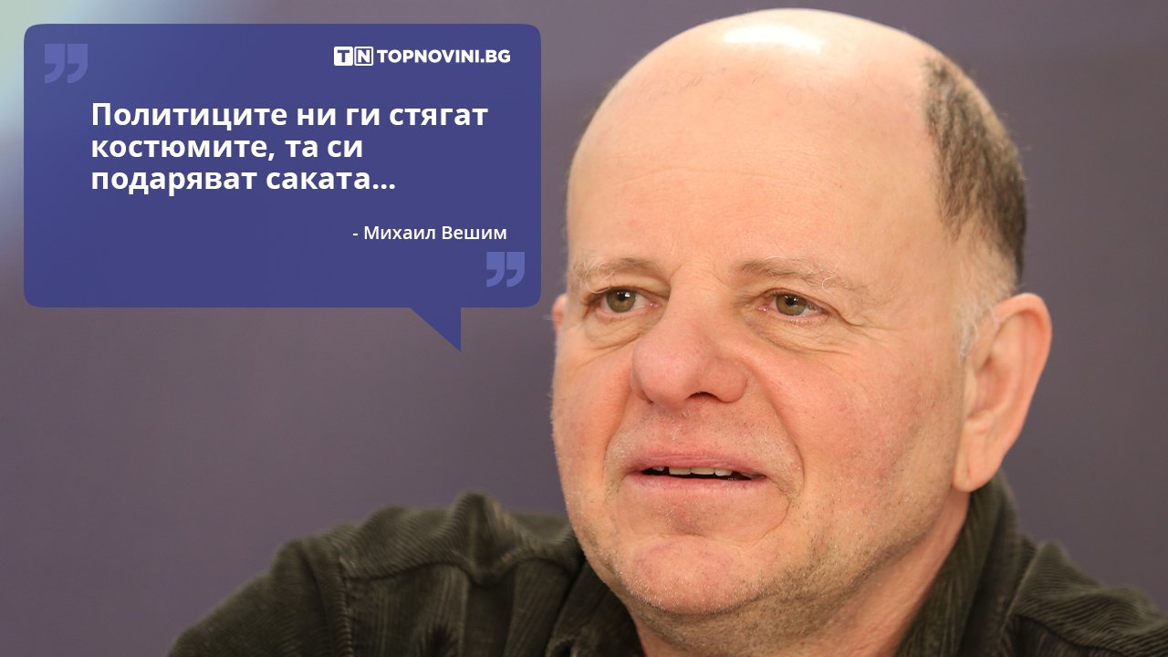 По думите му обаче политиците ни не са широкоскроени, а точно обратното. „Те са тясноскроени и ги стягат костюмите, та си подаряват саката. Обаче имат чувство за хумор. Най-показателният пример е сегашният ни премиер. Той има чувство за хумор и много остър език. Може с една шега да навре политическия си противник в ъгъла, както го и прави. Министър-председателят няма другото, което е една степен по-нагоре – чувството за самоирония. Той не може да се погледне отстрани и се смята за велик, което го прави страшно смешен“, сподели Михаил Вешим, като отбеляза, че това е и причината Борисов да не може да понася карикатурите с неговия образ.