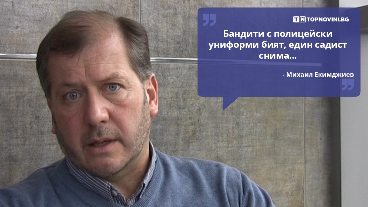 „Това не бяха действия на полицаи, това бяха действия на бандити с полицейски униформи и един садист, който с удоволствие снимаше, за да се хвали може би пред приятелите си колко велик мъж е или пък за да докаже на началниците, които са му възложили да действа точно така“. Така адвокат Михаил Екимджиев коментира кадрите с полицейско насилие от антиправителствените протести миналата година.