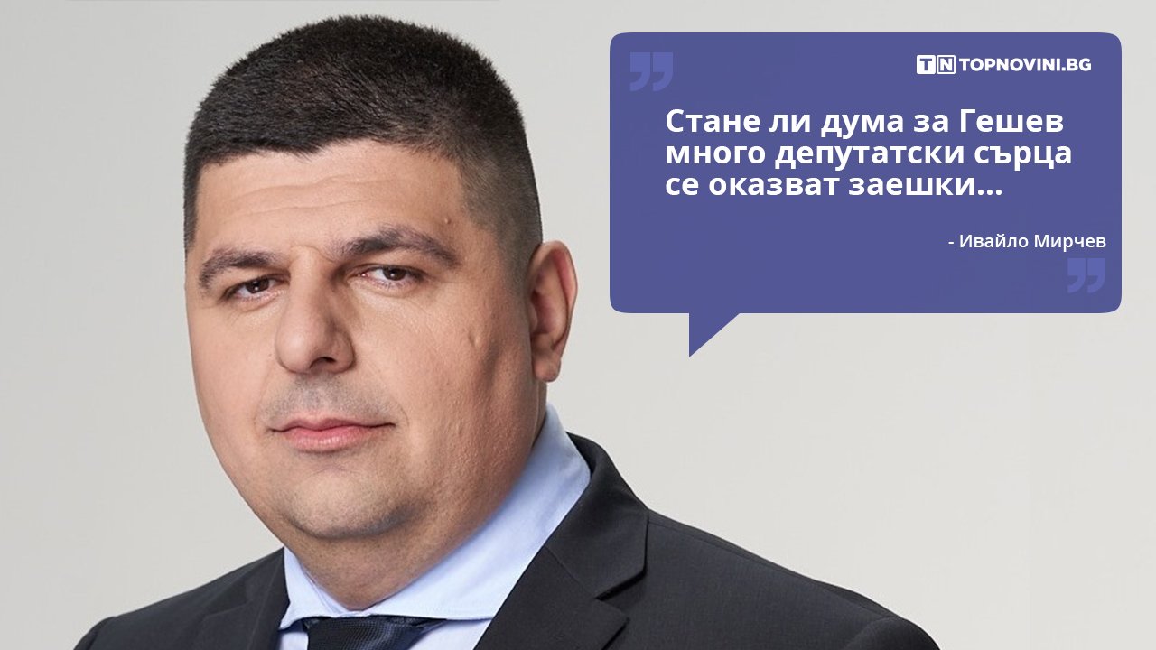 В момента, в който стане дума за г-н Гешев много депутатски сърца се оказват заешки и много колена омекват рязко. С очите си виждам как хора, които в медиите декларират как ще се борят срещу него и една изключителна смелост да участват в промяната на Закона за съдебната власт, за преместването на Бюрото за защита в Министерството на правосъдието, рязко започват да липсват от комисии, да не искат да се подпишат за извънредно заседание на НС, в зала да гласуват в т.нар. коалиция „Гешев“. И това е изключително разочароващо“, заяви депутатът от „Демократична България“ Ивайло Мирчев по повод случилото се в петък в правна комисия при приемането на закона за преместването на Бюрото за защита от главния прокурор на подчинение на Министерството на правосъдието.