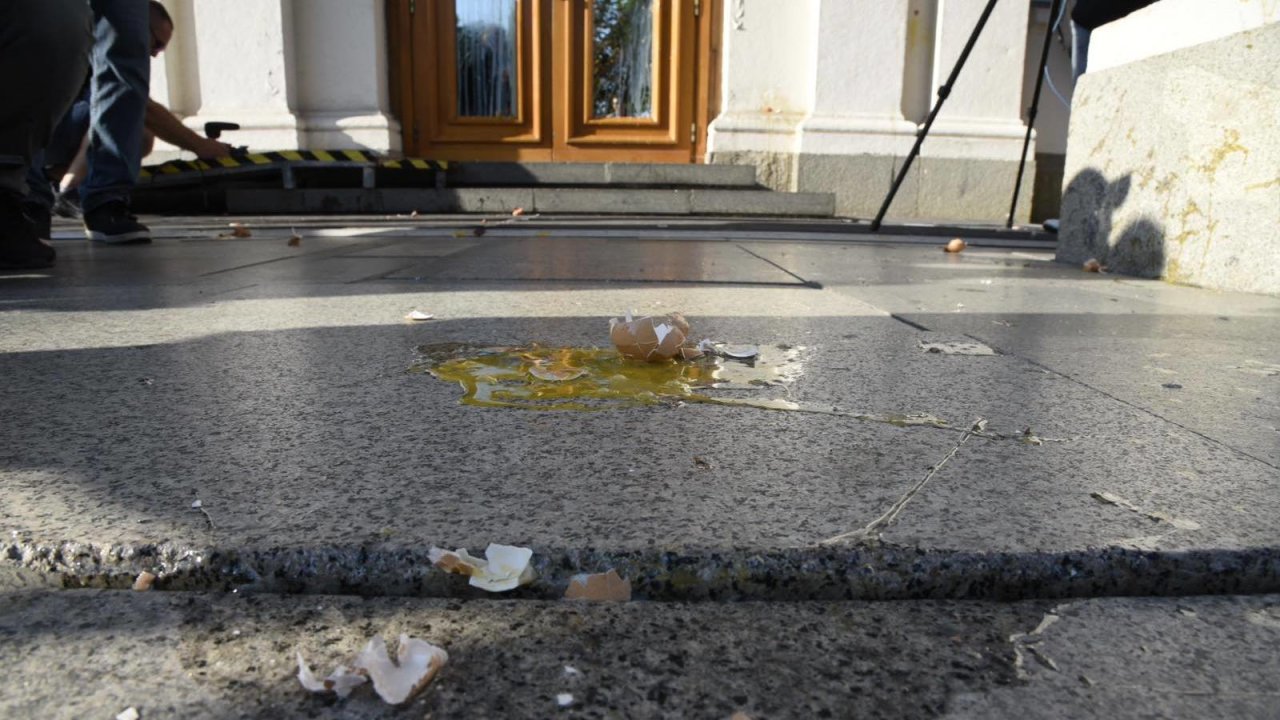 Протестиращи се събраха пред входа парламента със скандирания "оставка". Бяха готови да замерят депутатите с яйца, но ГЕРБ и патриотите така и не се появиха. Яйца полетяха само към сградата на институцията. Демонстрантите се хванаха за ръце и образуваха жива верига около Народното събрание. Полицейското присъствие е засилено.