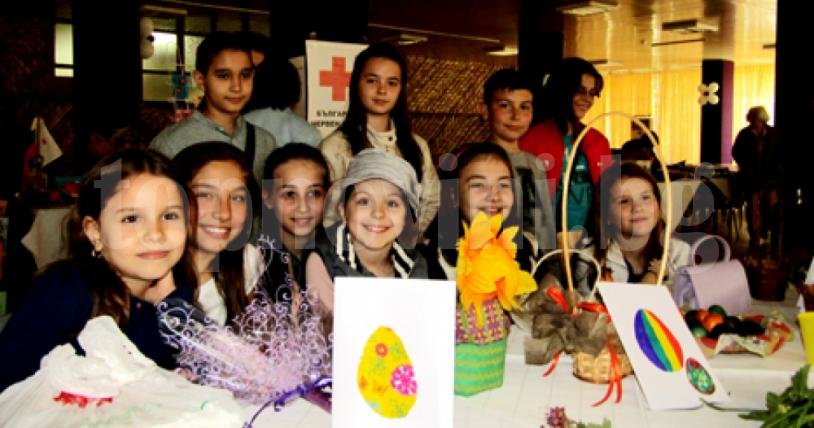 В благородната кауза със свои изделия участваха също млади доброволци от БЧК. От техния щанд можеха да се закупят великденски картички, писани яйца и сувенири.