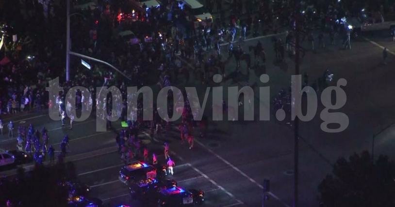 Стотици демонстранти блокираха района ококоло зала „Пасифик Амфитиатър“ в град Коста Меса, Калифорния, докато Тръмп изнасяше реч.
