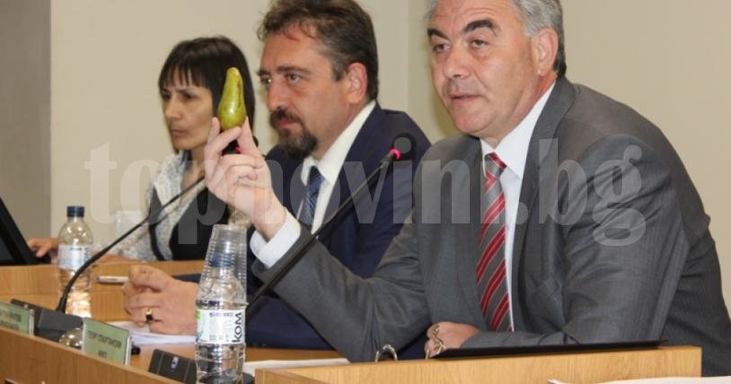 "Това в ръката ми се предполага, че е плод. Заедно с вафла или бисквита е дадено на плевенско дете. Абсолютно безобразие и наглост от страна на доставчика и престъпно безхаберие от страна на директора. Такава гавра няма да допусна. Това граничи с престъпление", коментира градоначалникът.