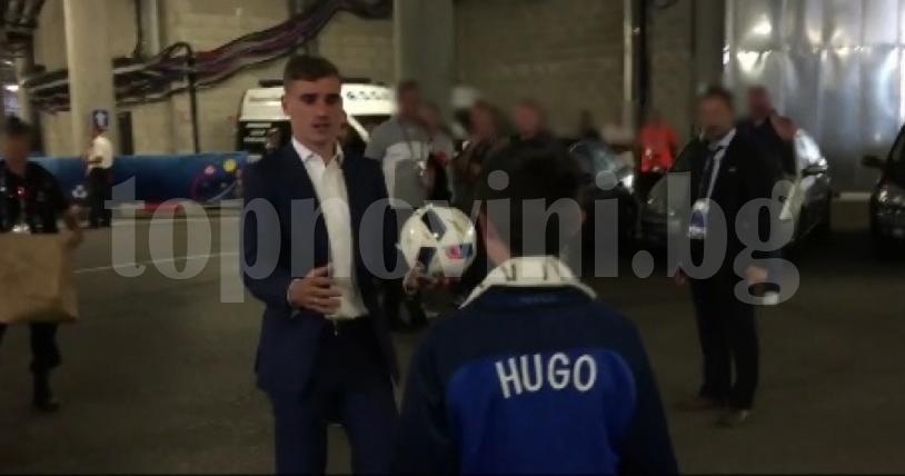 След края на мача между Франция и Ирландия, завършил с победа на „петлите“, героят на вечерта Гризман, вкарал два гола във вратата на ирландците, подари топката от срещата на 10-годишния Уго, чийто баща Жан-Батист Салвинг, бе убит от джихадиста Лароси Абала.