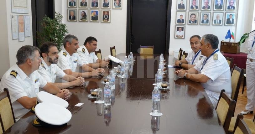 Гостите бяха посрещнати от комодор проф. д.в.н. Боян Медникаров – началник на Висшето военноморско училище. По време на визитата гръцките офицери обсъдиха спецификата на обучението на кадри за военноморския флот в България и Гърция. Обучаеми и офицери ще се запознаят с възможностите, предоставяни от учебните тренажори и симулатори на Военноморското училище, утре.