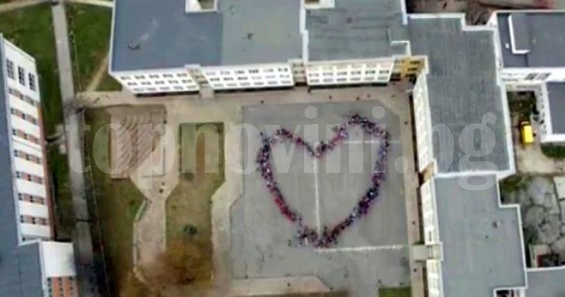 200 ученици оформиха огромно сърце в двора на 55 СУ