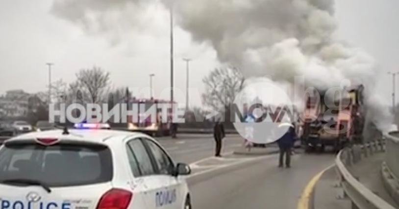 Машина за асфалт се запали на надлез "Надежда"