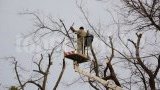Улица „Васил Левски“ в центъра на Бургас е затворена за преминаване, видя репортер на Topnovini.bg. Там е разположен голям кран, с който общински служители режат клоните на дърветата.