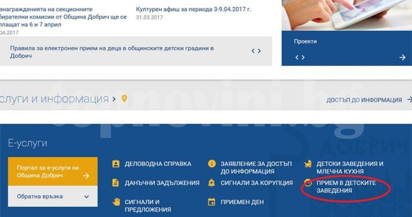 Услугата се предлага за първи път и има за цел да улесни родителите при записване на децата в желаното детско заведение, обясняват от Общината. Новата услуга може да се използва от началната страница на сайта на Община Добрич www.dobrich.bg в Рубриката „Прием в детските заведения“. Помощ в попълването на модула родителите могат да получат като изтеглят ръководството за потребители.