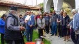 Йеромонах Константин от преславския манастир „Св. Пантелеймон” освети курбан за здраве в двора на върбишката църква „Св. Димитър Солунски” в центъра на града.
