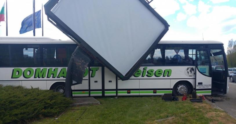 В резултат на пътния сблъсък са настъпили само материални щети, както по двете превозни средства, така и по пътната инфраструктура. Автобусът е излязъл от пътното платно и се е забил в билборд, който тежи около 1,2 тона и е висок 5,5 метра. Вследствие на сблъсъка билбордът е полуизкривен.
