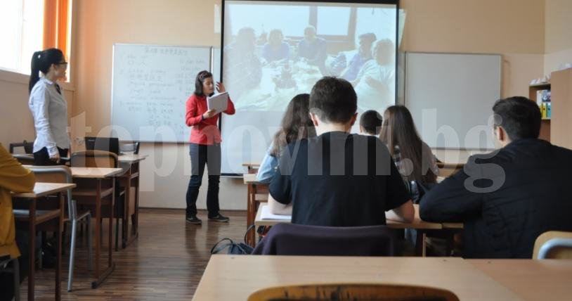 Днес възпитаниците на Природоматематическата гимназия демонстрираха наученото през последните месеци по време на открит урок, воден от 25-годишната Ян Ли Рен. На занятието присъстваха кметът Димитър Николов и зам.-кметът по образование Йорданка Ананиева.