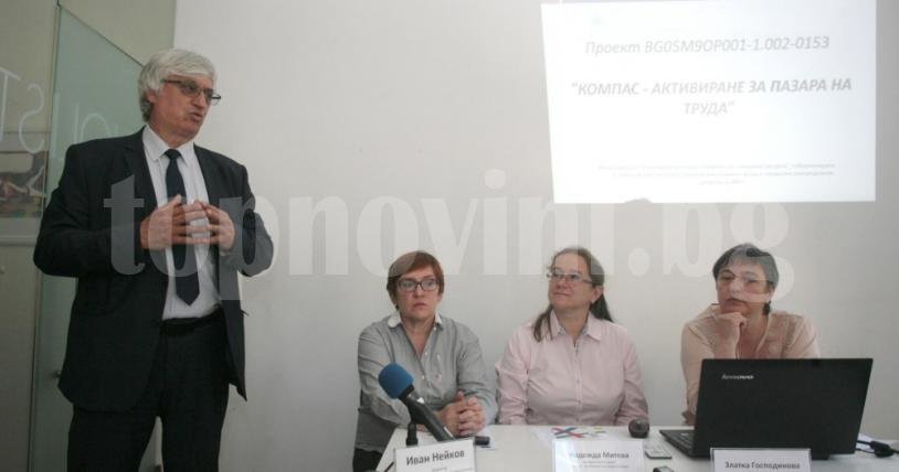 Цел на проекта „Компас - активиране на пазара на труда”, финансиран от ОП „Развитие на човешките ресурси” и съфинансиран от ЕС чрез ЕСФ, е активиране и интеграция на младежи между 15-29 г., които не са в процес на образование или обучение и активиране им на пазара на труда минимум на 66 лица от целевата група с предоставяне на пакет услуги по места в областите, продължи презентацията си Златка Господинова. Минимум същата бройка лица ще преминат мотивационни обучения за активно търсене на работа с 10-дневни обучения с включени стипендии. А 50 лица от целевата група ще продължат участието си в обучение по дигитална компетентност, а накрая ще получат сертификат. Ще се осигури и субсидирана заетост на 50 младежи от целевата група за период от 2 месеца като те ще бъдат наети от Балканския институт по труда и социалната политика на 4-часов работен ден като анкетьори с осигурен трудов договор и въвеждащо ориентиране в работата.