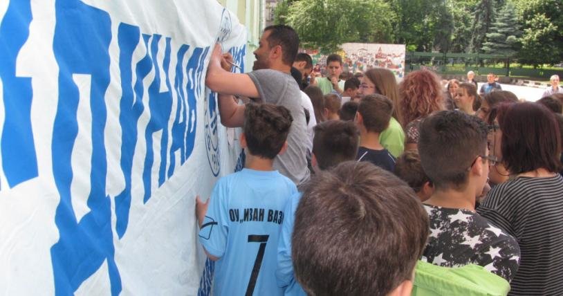 Те от своя страна не пропуснаха да обърнат внимание на всеки малчуган. Отговориха на въпросите на най-любопитните и дори поритаха с някои от тях. Не липсваха селфита, както и автографи върху тефтери, снимки, плакати, тениски и дори върху футболните обувки на някои от малките ученици-футболисти в ОУ „Иван Вазов“.