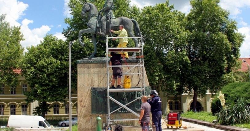 Eкип, ръководен от плевенския скулптор Красимир Рангелов, възстанови целостта на сабята на ген. Скобелев след вандалското посегателство на неговия паметник преди дни.