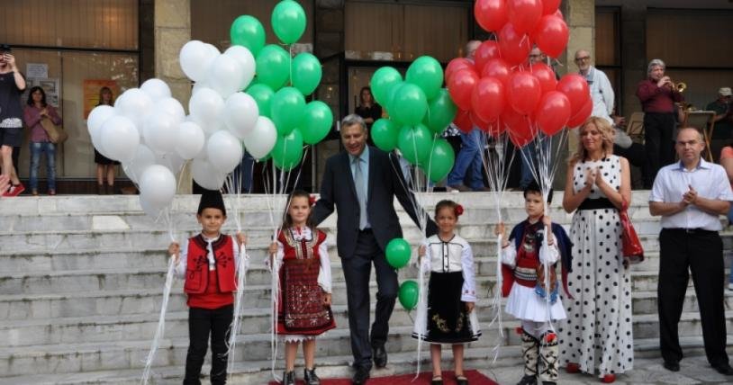Церемонията по посрещане на звездите, начело с кмета Красимир Герчев, бе пред градското читалище.