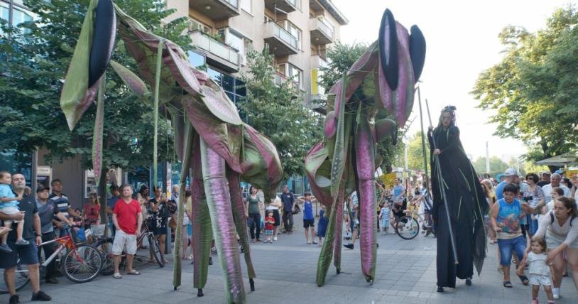 Насекоми с размери над 6 метра се появиха в центъра на Бургас. Буболечките са от вида Phyllocrania paradoxa - или накратко богомолки. За радост, това не са истински насекоми, а спектакъл на артистите от театър „Файъртър“, които изнесоха представление като част от фестивала „Включи града“.