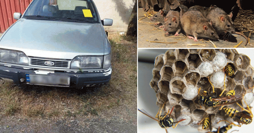 "Това е доста опасно за децата. Няколко пъти говорихме със собственика, които живее във вх. А, обаче той не предприема никакви мерки. Има алергични деца и едно ухапване от оса или плъх може да е фатално. Прозорците на колата са счупени и от там излизат всякакви гадини", притесняват се живеещите в блока.