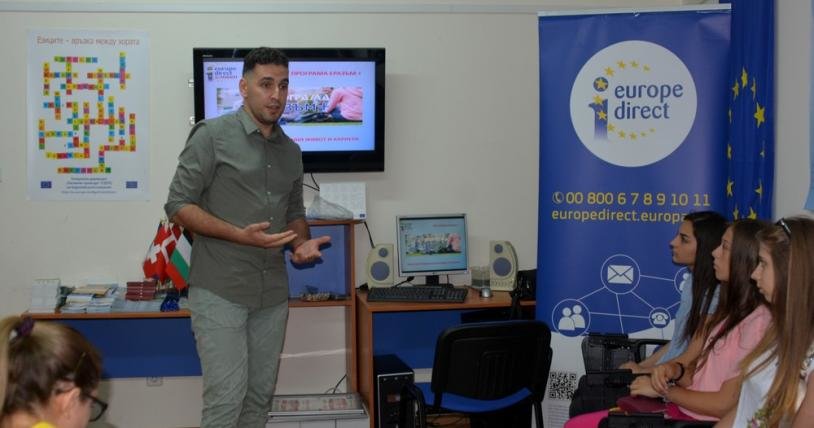 Възможностите и предизвикателствата пред младите хора в Европа бяха тема на разговор в Информационен център „Европа Директно-Сливен”. Цел бе да се запознаят младежите от Сливен с възможностите за обучение, пътуване, работа, младежки обмен, както и с предизвикателствата и опасностите, пред които могат да бъдат изправени. В срещата участваха ученици от последната степен на обучение в ПГПЗЕ „Захарий Стоянов”, ППМГ „Добри Чинтулов” и ПГХТ „Акад. Неделчо Неделчев”.