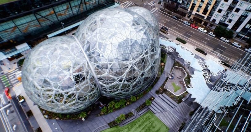 Amazon, най-голямата в света компания за онлайн търговия, откри новия си централен офис в Сиатъл, в който има тропическа гора. Сградата представлява група от три геодезични купола и е проектирана от базираната в Лос Анджелис архитектурна фирма NBBJ, съобщи "24 часа".