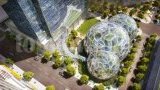 Централният купол е най-голям. Той е с диаметър 40 м и височина 27,5 м и в него са събрани 5 етажа. Сградата е покрита с 2643 стъклени панела.