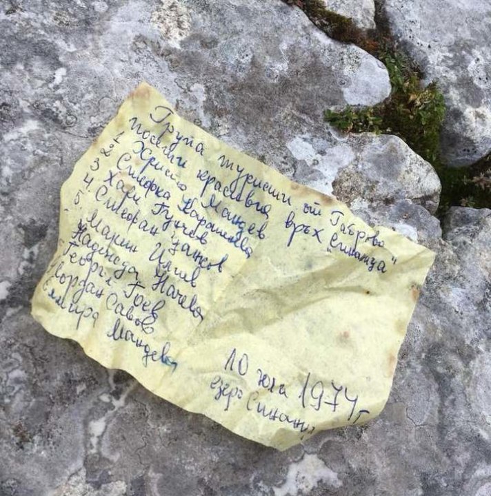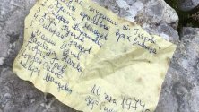 Туристи откриха писмо в бутилка от габровски планинари от далечната 1974 г. Скритото писмо е намерено край връх Синаница и Синанишкото езеро в Пирин.
