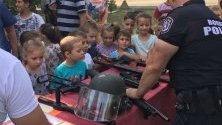 Особен интерес предизвика демонстрацията с граничарски кучета, които изпълняваха команди по задържането на нарушител. Децата аплодираха полицая и неговите четириноги колеги - Ден и Хера. Малките гости се запознаха и с техниките за лична полицейска защита и задържане на престъпник, представени от служители на мобилната гранично-полицейска група.