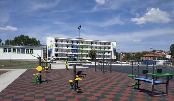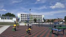 Просторният двор вече ще предлага на учениците богати възможности за спорт със своите нови игрища по волейбол, баскетбол, футбол и фитнес площадка. Нови алеи, зеленина и беседки ще предразполагат гимназистите към занятия на открито и отдих в свободното време.