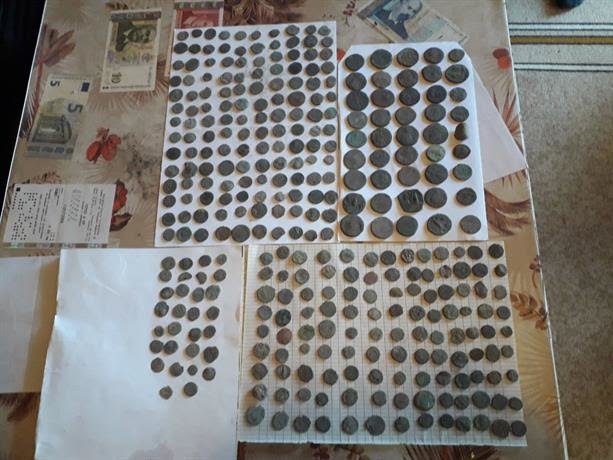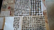 Полицаите са претърсили дом на 40-годишен мъж в с. Тъкач след подаден сигнал. Открити са 349 монети с различна форма и големина, керамичен съд, осем предмета с форма на брадва и сечива, както и метал детектор.