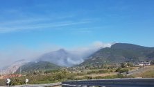 Силният вятър затруднява работата на пожарникарите. В потушаването се включиха на 100 души.