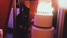 Четириетажната торта на Бела бе в центъра на събитията с изчистената бяла визия, черни кантове на всеки етаж и украсата от цветни пеперуди.