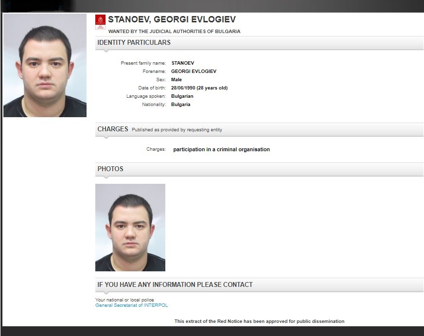 Първи за издирване от Интерпол бе обявен 35-годишният Антон Станоев. Първоначално за 28-годишния му брат Георги, станал известен с връзките си с някои от най-популярните фолк певици у нас, бе обявено, че няма данни да е избягал в чужбина, затова бе търсен само у нас.