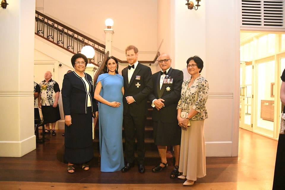 Съпругата на принц Хари облече рокля по тялото, която подчертаваше всяка извика на тялото ѝ за вечерята с фиджийския президент Джиоджи Конроте в хотела "Гранд Пасифик".