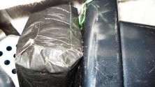 При извършения щателен оглед на колата, митническите служители откриват подозрителен пакет, укрит в арматурното табло.