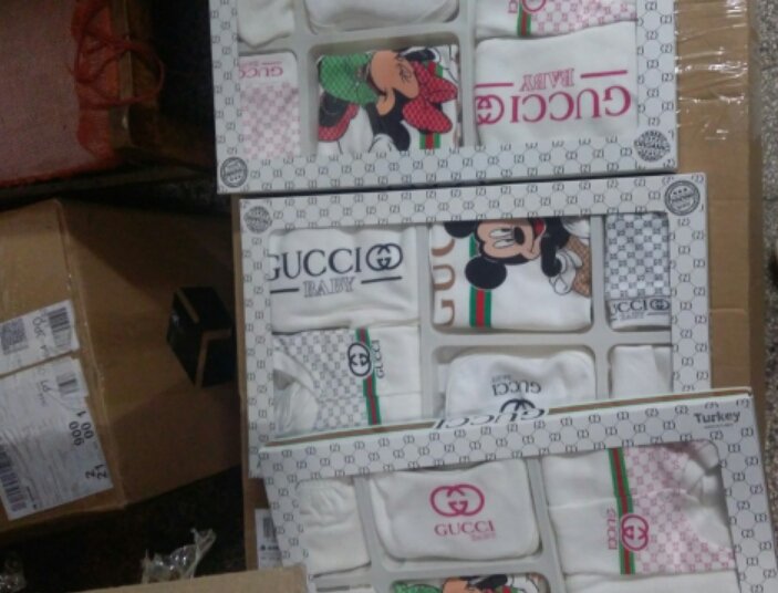 В подготвените от мъжа кашони са били открити близо 560 артикула - дънки, якета, спортни екипи, чанти, колани, часовници и други стоки, носещи логата на световно известни търговски брандове. Товарителници с имената на същия изпращач били залепени и върху четири големи чанти, в които се съдържали 28 000 сашета с определена стимулираща хранителна добавка.
