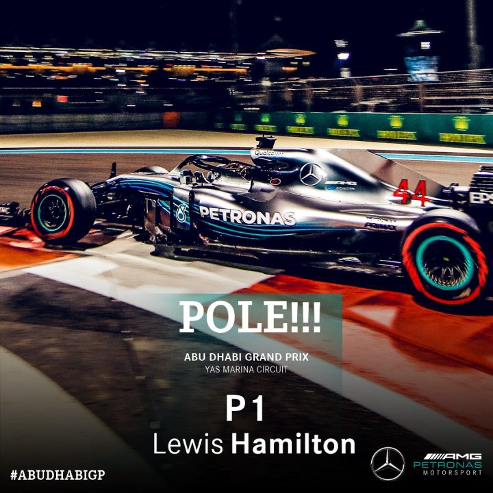 В последния старт за сезона във Формула 1 пилотът на Мерцедес се наложи в борбата за стартова позиция с нов рекорд на пистата Яс Марина в Абу Даби. Втори ще стартира
