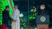 Президентът на Съединените щати Доналд Тръмп участва в церемонията по запалването на коледната елха на поляната пред Белия дом.