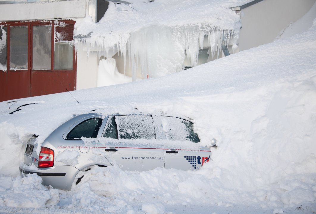 През последните две седмици в Австрийските Алпи наваля няколко метра сняг, което доведе до затваряне на много пътища и до висок риск от лавини.