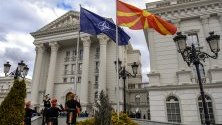 Флагът на НАТО беше издигнат пред сградата на македонското правителство в Скопие. На церемонията премиерът Зоран Заев подчерта: „Всички можем да бъдем горди, че живеем в новото време – ера на изгрева на демократично общество, на равноправни граждани, които се стремят да усвоят европейските правила“.