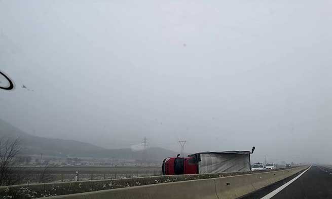 Заради силен трафик ТИР се е обърнал на АМ „Егнатия“ в Гърция в участъка между Ксанти и Комотини, съобщи bTV.