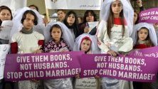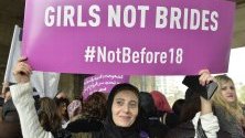 Момичета, облечени в булчински рокли и бели воали, също взеха участие в демонстрацията. Те издигнаха плакати с надписи "Краят на женитбата на деца започва с тяхното образование", "Не преди 18 години" и "Спрете ранните бракове".