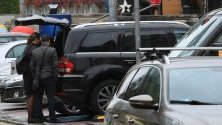 Лъскавото возило е паркирано на място за инвалиди на улица „Ген. Гурко“ пред Телефонната палата, където служителите на реда го претърсват и снемат отпечатъци от купето и багажника на автомобила.