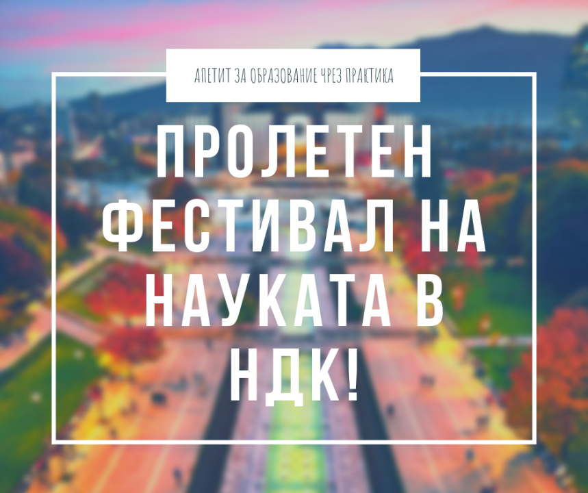 “Пролетен фестивал на науката” ще се премести от парка на НДК в зала 3-център /3-ти етаж/ на Национален Дворец на Културата заради очертаващия се високия риск от валежи. Фестивалът стартира на 13 април в 11 часа и ще продължи до 17 ч. на 14 април.