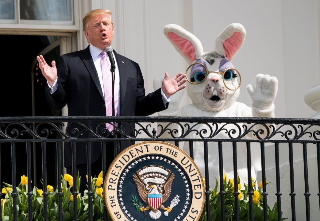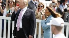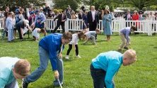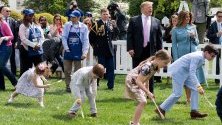 Американският президент Доналд Тръмп и първата дама на САЩ Мелания Тръмп гледаха традиционния ритуал в Белия дом - търкаляне на великденски яйца.