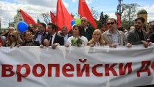 С над 20 000 души започна традиционният първомайски митинг-шествие на БСП. Хората, дошли от цялата страна в София, тръгнаха на шествие от пл. „Св. Александър Невски“ към пл. "Независимост". Те носят плакати с надписи: „Искаме европейски доходи“, „Справедливост и достойнство СЕГА!“, „Искаме да останем в България“, „Не щем вежливост, а справедливост“.