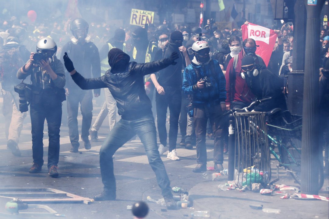 Френската полиция влезе в сблъсъци с протестиращи, които хвърляха камъни, запалиха малки пожари и потрошиха автомобили на фона на първомайските демонстрации, събрали хиляди участници при строги охранителни мерки, предаде Асошиейтед прес, цитирана от БТА.
